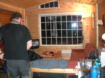 Nach einer langen erfolglosen Suche einer Hütte auf mehreren Campingplätzen fällt uns dieses Schmuckstück zu. Zwar etwas teurer als sonst, dafür aber sehr groß für 3 Personen. Eigentlich ist die Hütte für 7 Personen, mit kompletter Küche, Fernseher, zwei Schlafzimmern…