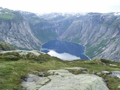 Auf der Trolltunga (Trollzunge), unter uns ist ca. 800 Meter nur Luft.