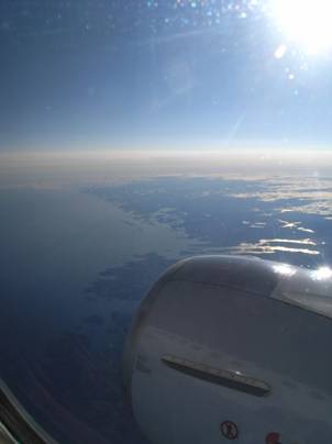 Rückflug – unten ist noch die Südküste Norwegens mit ihren Fjorden zu sehen.