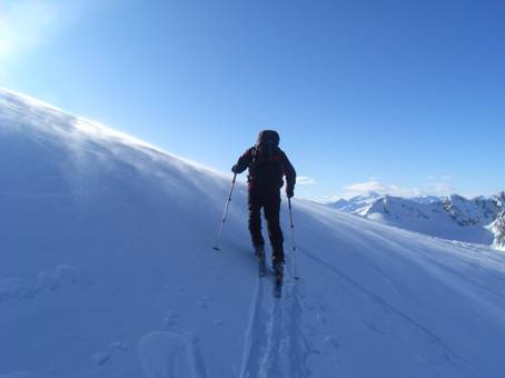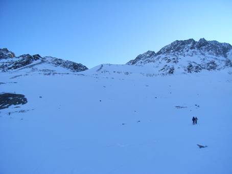 Auch alle anderen Tourengeher sind hier ohne Seil unterwegs.