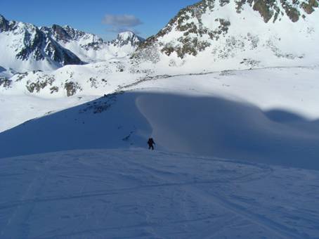 interessant. Ein Mix aus Eisplatten, Bruchharsch und einigen wenigen Stellen windgepresstem